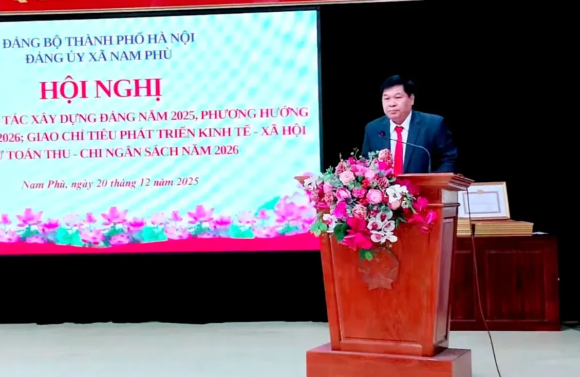 Kinhtedothi - Ngày 20/12, Đảng ủy xã Nam Phù tổ chức hội nghị tổng kết công tác xây dựng Đảng năm 2025; triển khai phương hướng, nhiệm vụ năm 2026; đồng thời giao chỉ tiêu phát triển kinh tế – xã hội và dự toán thu, chi ngân sách năm 2026.