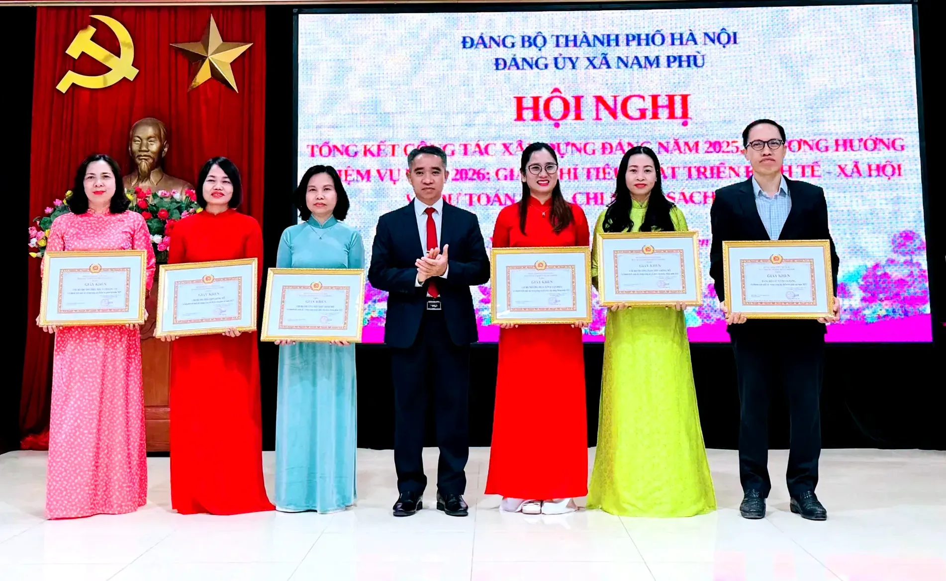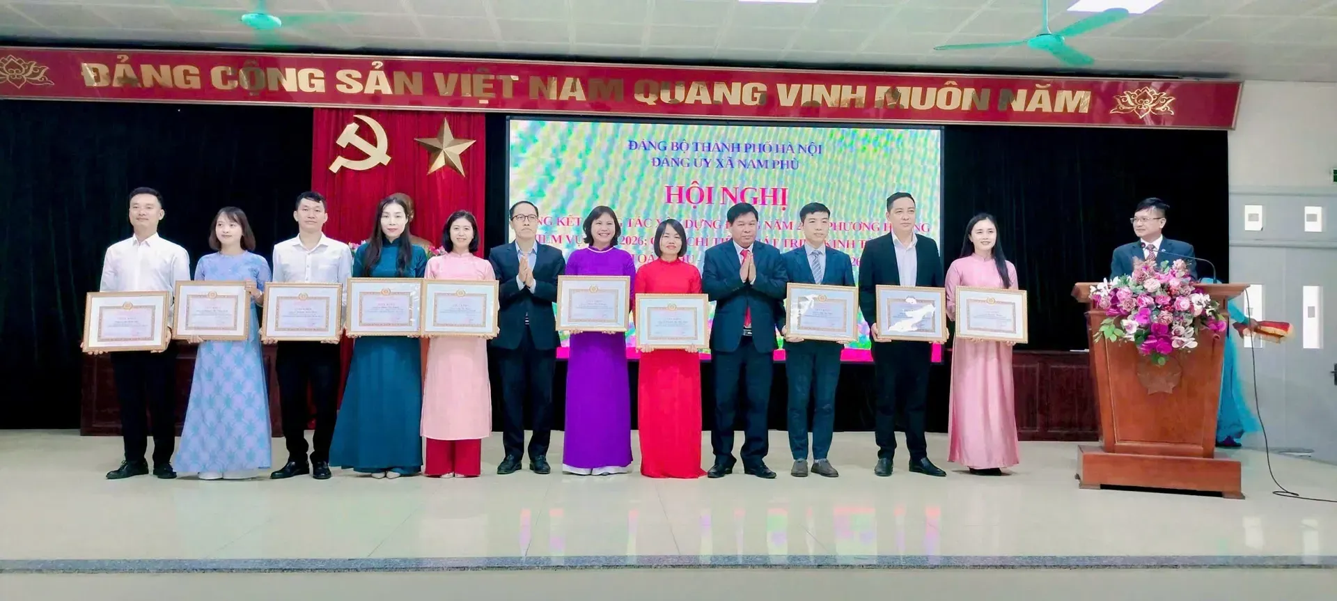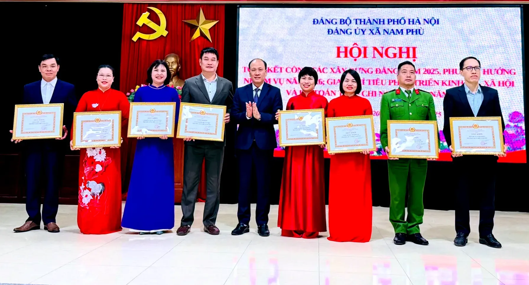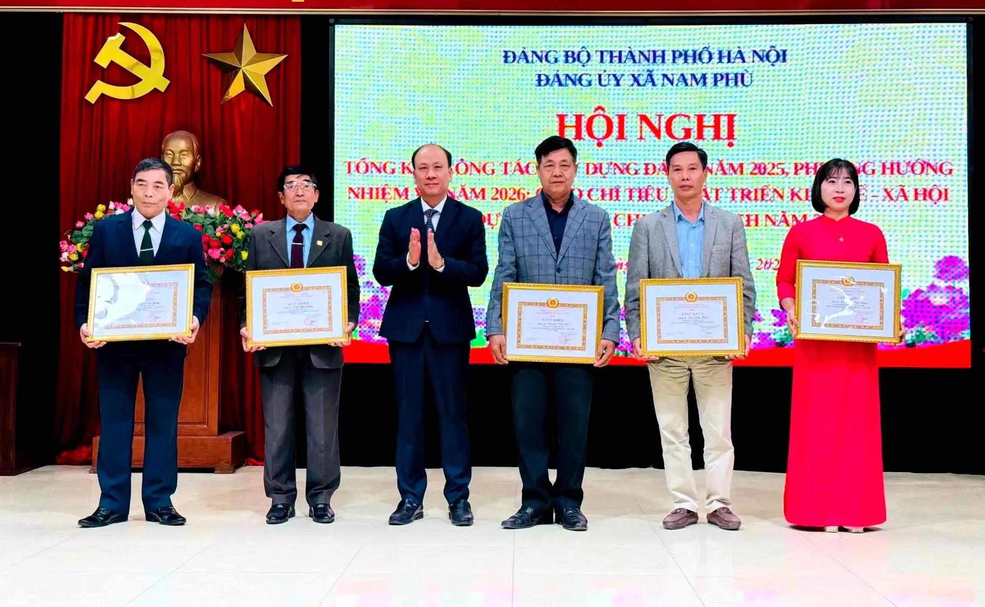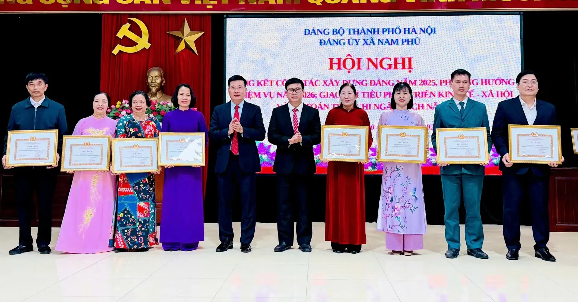Nhân dịp này, Đảng ủy xã Nam Phù đã khen thưởng 8 tổ chức Đảng và 170 cá nhân hoàn thành xuất sắc nhiệm vụ năm 2025; 14 tổ chức Đảng và 11 cá nhân có thành tích tiêu biểu trong công tác xây dựng Đảng.