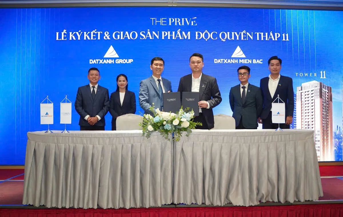Kinhtedothi - Vừa qua, Đất Xanh Miền Bắc chính thức ký kết và nhận giỏ hàng độc quyền Tháp 9 & 11 dự án The Privé, thuộc phân khu 3 mặt sông đẹp nhất dự án. Việc nắm giữ giỏ hàng tinh tuyển không chỉ khẳng định năng lực triển khai dòng bất động sản hạng sang mà còn giúp các nhà đầu tư của Đất Xanh Miền Bắc có cơ hội sở hữu quỹ căn đẹp nhất tại dự án The Privé.