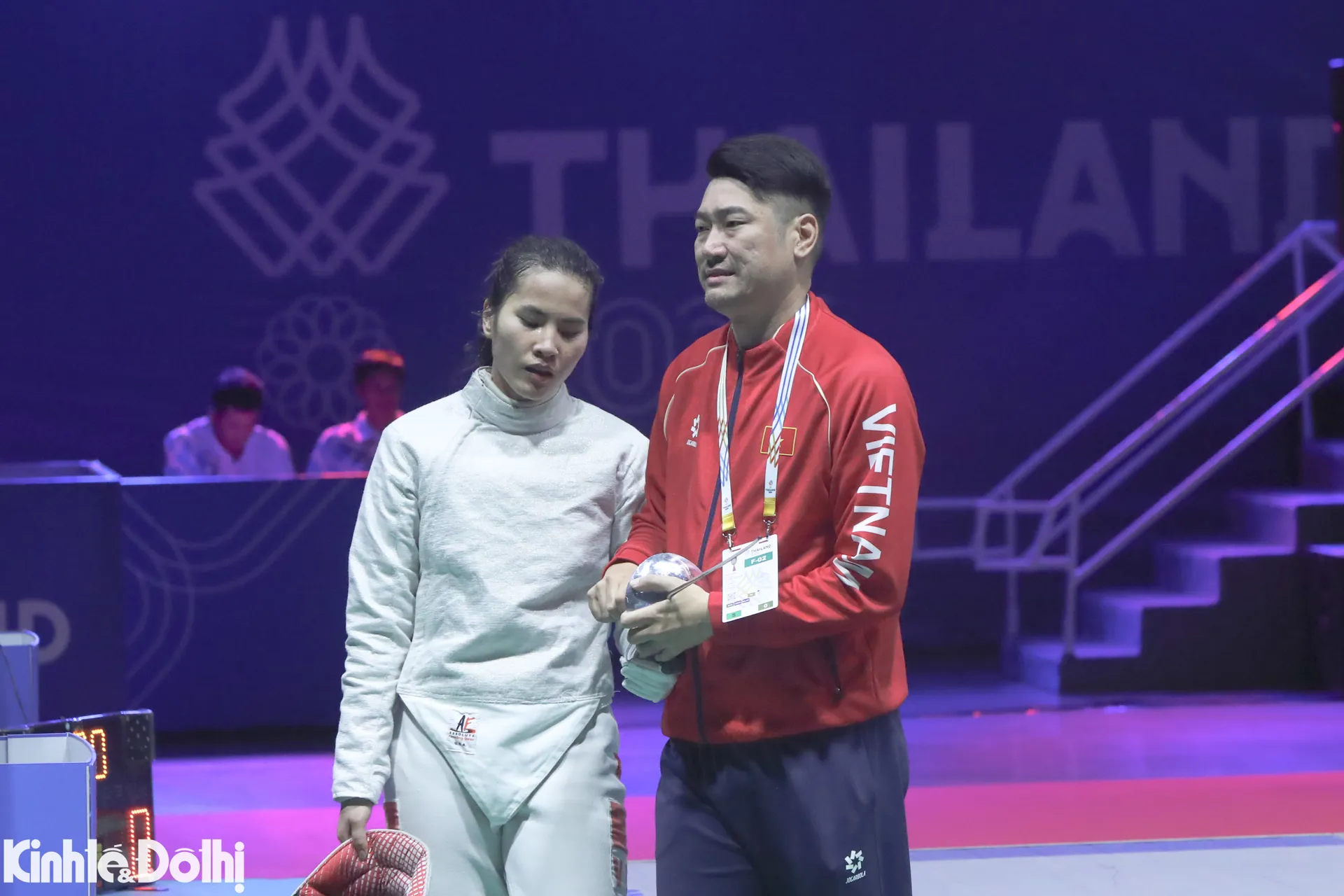 Nỗi buồn của kiếm thủ Phạm Thị Thu Hoài và HLV Nguyễn Lê Bá Quang sau khi thất bại ở trận bán kết.