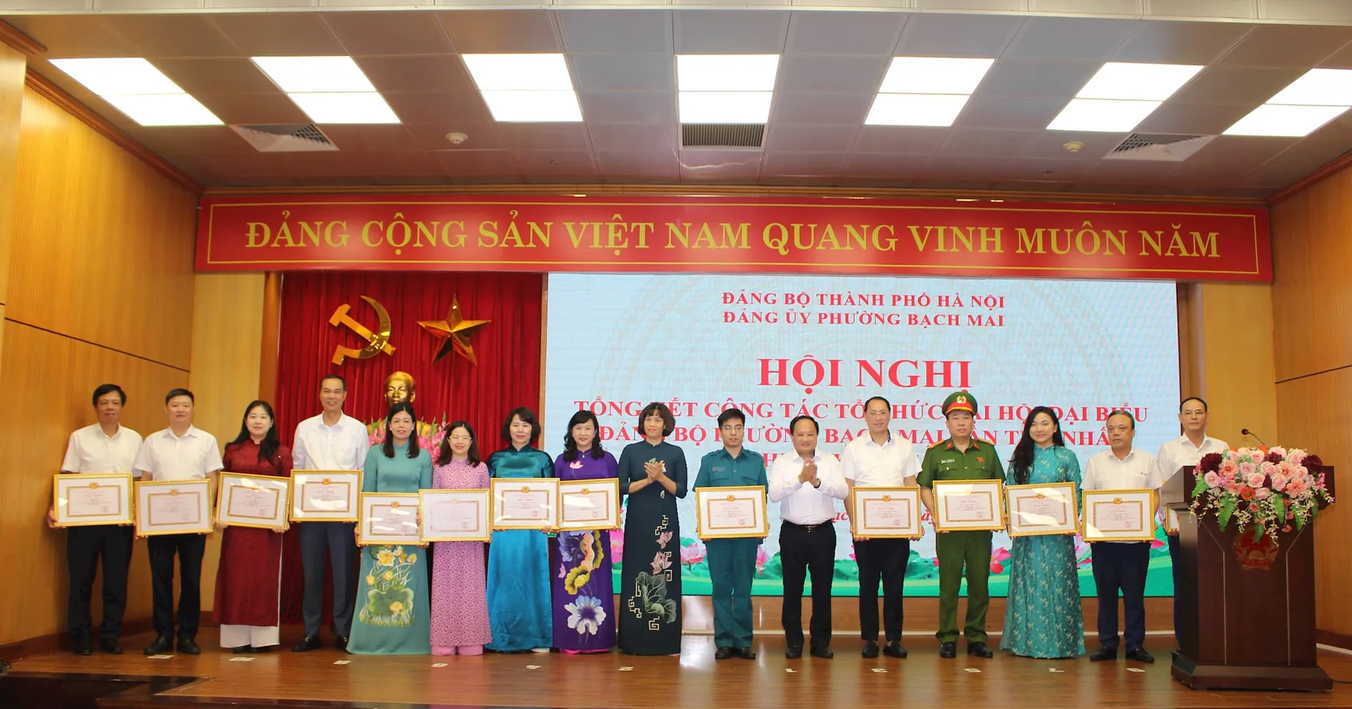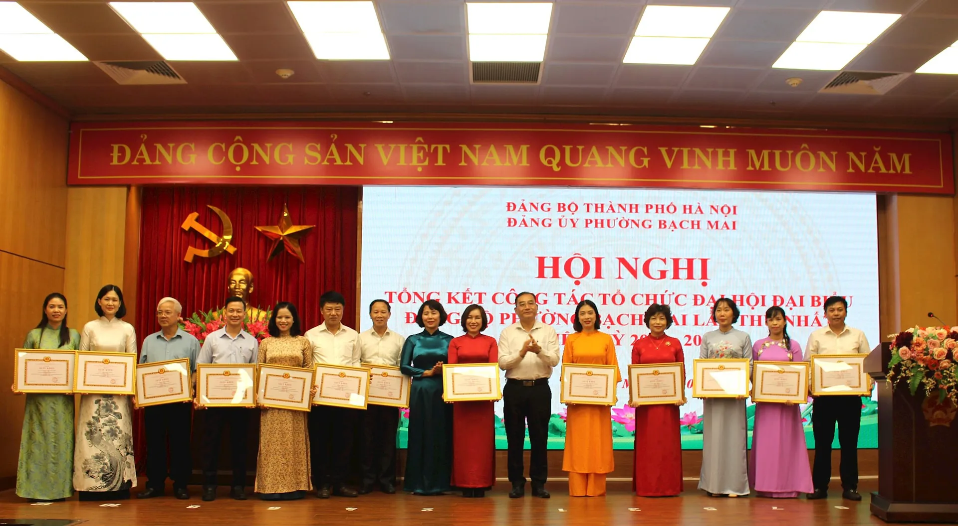 Ghi nhận, biểu dương kết quả công tác tổ chức Đại hội đại biểu Đảng bộ phường Bạch Mai lần thứ Nhất, nhiệm kỳ 2025-2030, tại Hội nghị, lãnh đạo Ban Nội chính Thành ủy Hà Nội và lãnh đạo phường Bạch Mai đã trao Giấy khen của Ban Thường vụ Đảng ủy phường tặng 18 tập thể, 61 cá nhân có thành tích xuất sắc trong công tác tổ chức Đại hội.