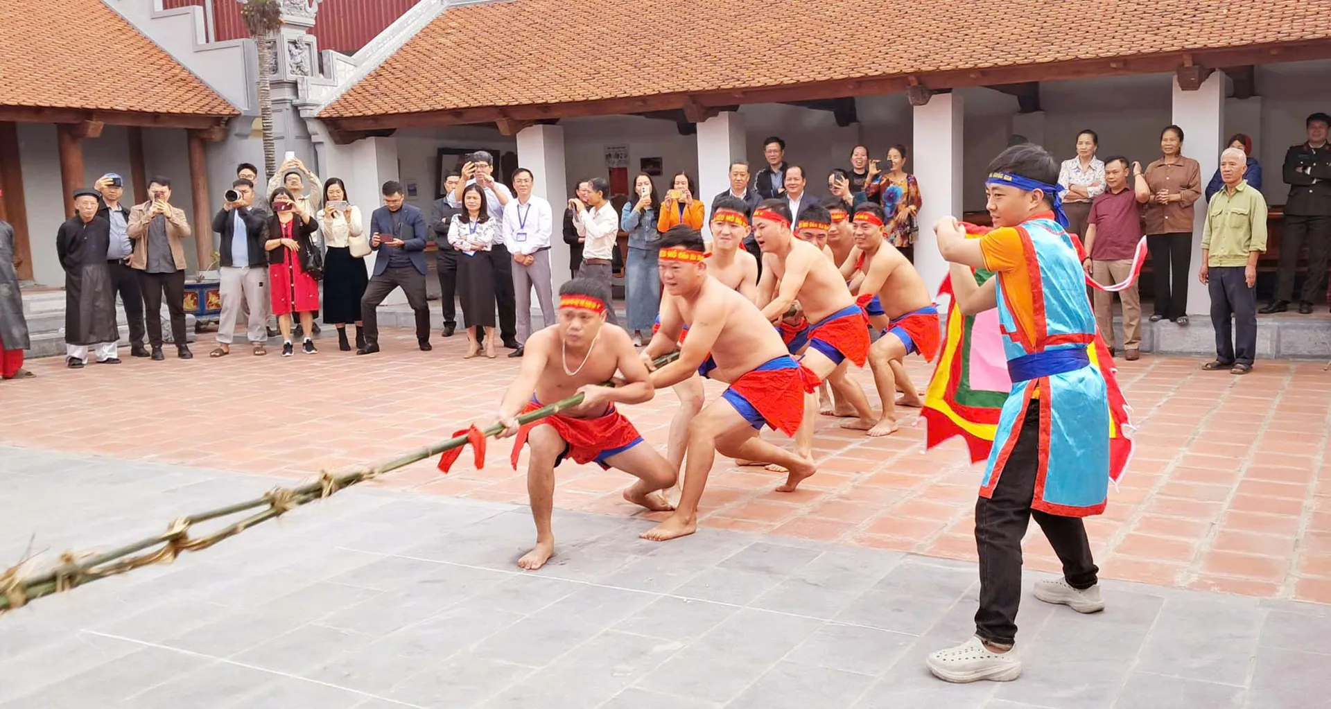 Trình diễn Nghi lễ Kéo Mỏ tại xã Đa Phúc phục vụ du khách. Ảnh: Hoài Nam