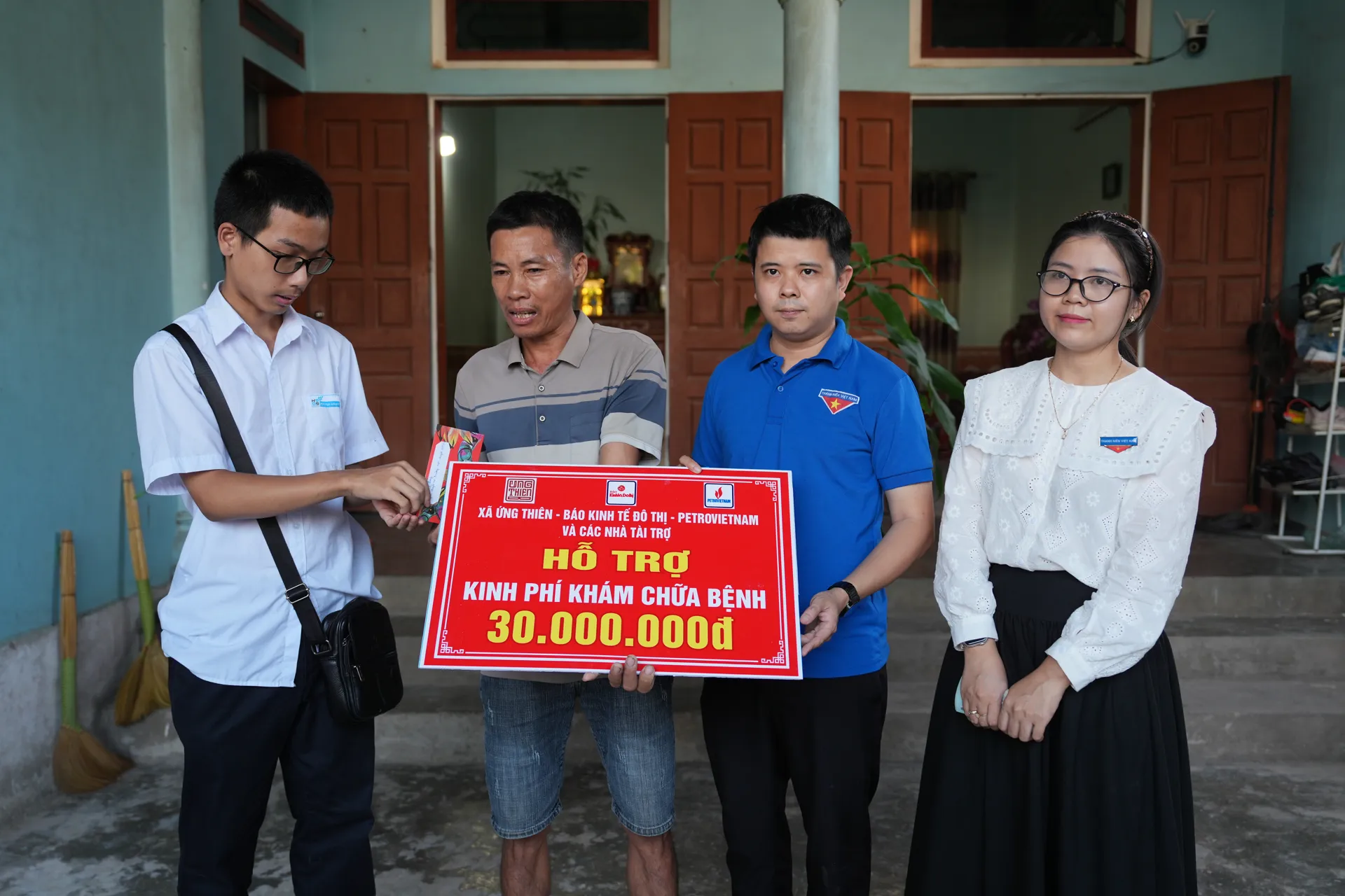 Điểm đáng trân quý trong chương trình lần này là sự tham gia của những tấm lòng thiện nguyện đến từ nhiều độ tuổi, trong đó có em Nguyễn Huy Long, học sinh lớp 11A3, Trường THPT Chuyên Khoa học Tự nhiên (Đại học Quốc gia Hà Nội). Long đã gửi tặng 5 triệu đồng, là số tiền học bổng và tiền mừng tuổi mà em tích góp được, với mong muốn hỗ trợ sách vở, đồ dùng học tập và một phần chi phí khám chữa bệnh cho 3 bạn nhỏ có hoàn cảnh đặc biệt khó khăn tại xã Ứng Thiên.