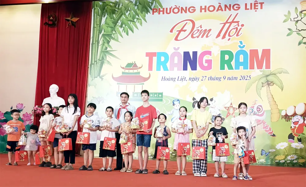 Kinhtedothi - Tối ngày 27/9/2025, tại Hội trường UBND phường Hoàng Liệt, Đêm hội trăng rằm đã diễn ra trong không khí rộn ràng, ấm áp, thu hút sự tham gia của khoảng 500 em nhỏ đến từ các tổ dân phố và cơ quan phường.