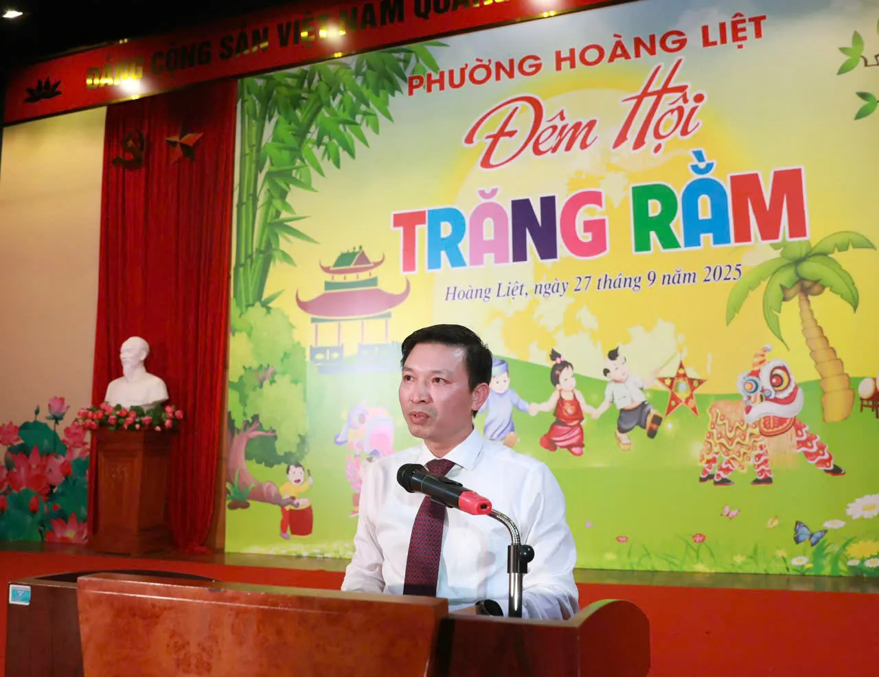 Phát biểu tại chương trình, ông Nguyễn Anh Tuấn - Chủ tịch UBND phường Hoàng Liệt nhấn mạnh: “Chúng tôi luôn xác định chăm sóc, bảo vệ trẻ em là trách nhiệm lâu dài. Đêm hội trăng rằm không chỉ là dịp để các cháu vui chơi mà còn là cơ hội để chúng tôi gửi gắm tình yêu thương, động viên các cháu vượt qua khó khăn, vươn lên trong học tập.”