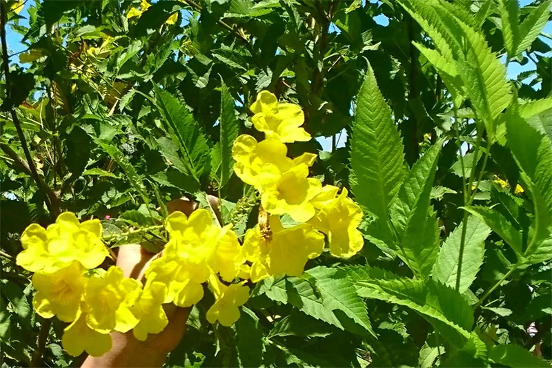 Đi trên con đường chừng 200 m, chúng ta bắt gặp khá nhiều cây hoa cỏ màu vàng rực rỡ.