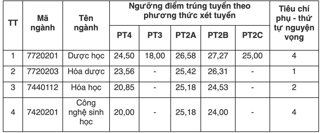Điểm chuẩn trúng tuyển Trường Đại học Dược Hà Nội 2025.