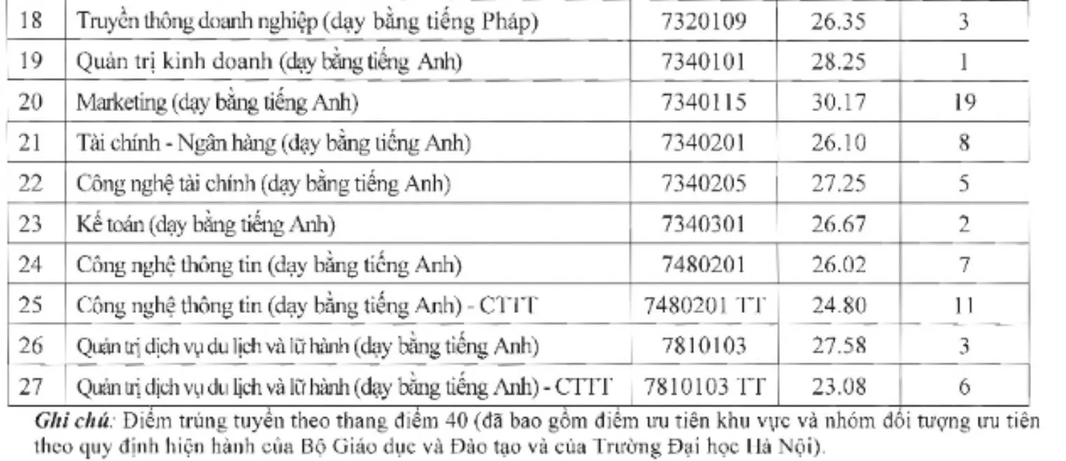 Điểm chuẩn Trường Đại học Hà Nội 2025.