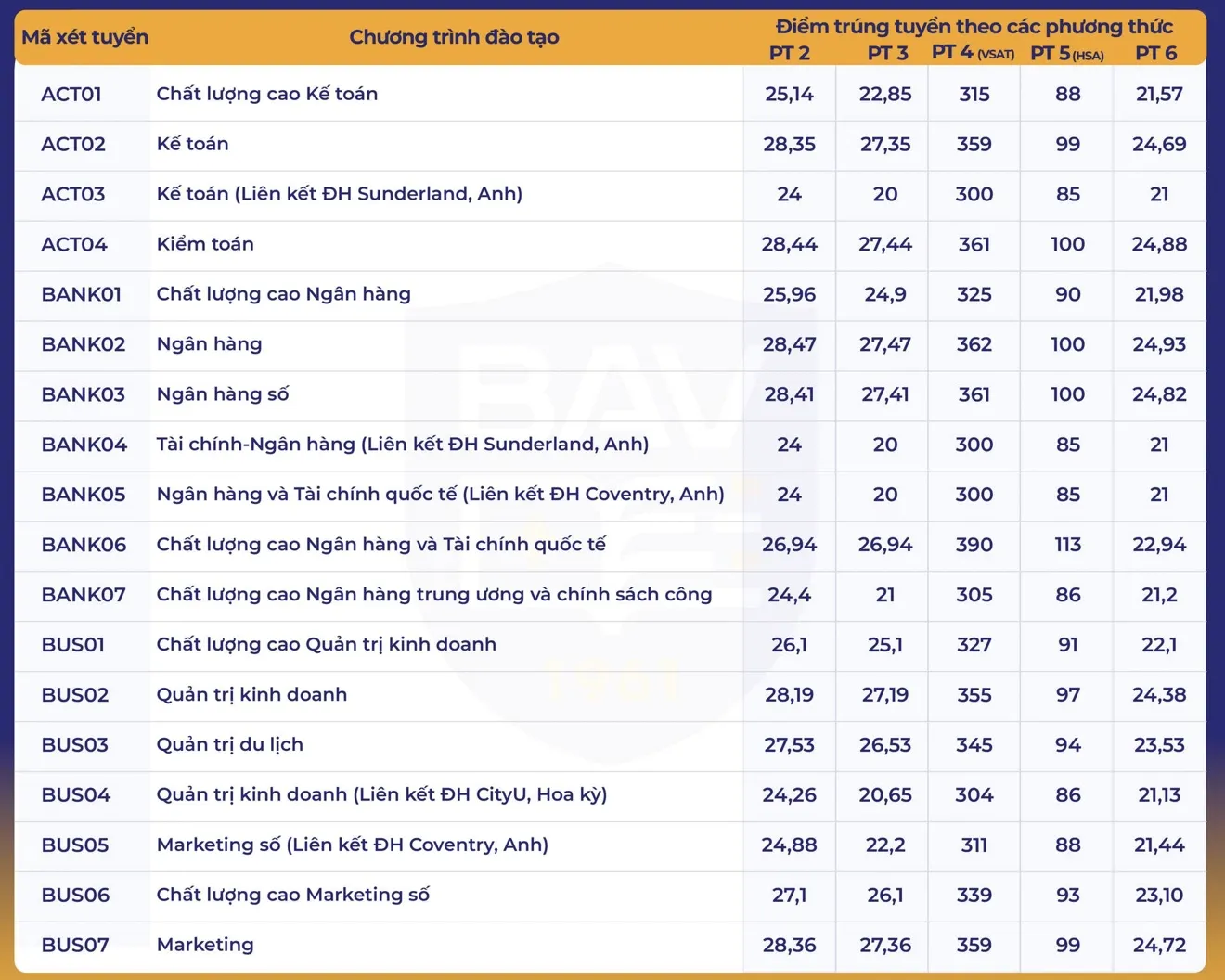 Điểm chuẩn Học viện Ngân hàng 2025.