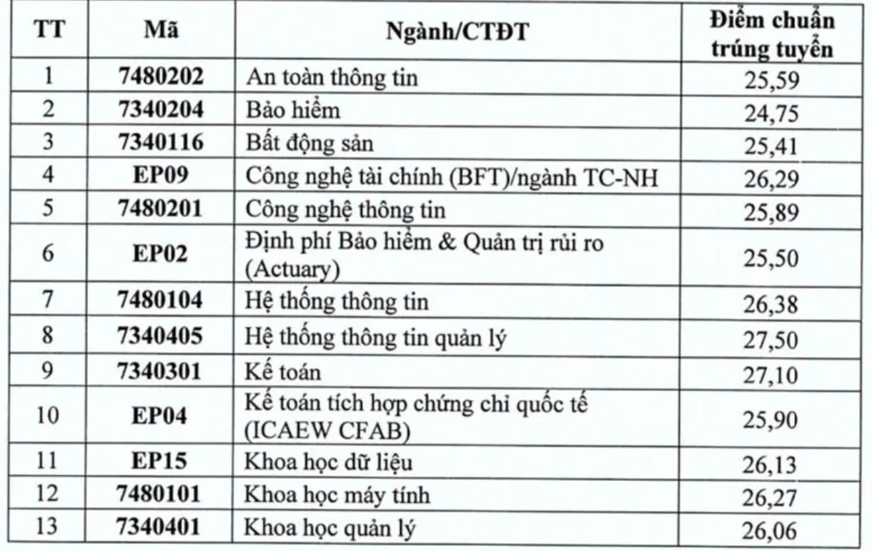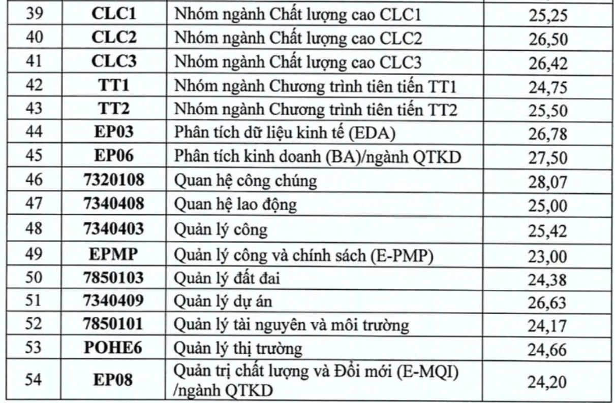 Điểm chuẩn năm 2025 của Trường Đại học Kinh tế Quốc dân.