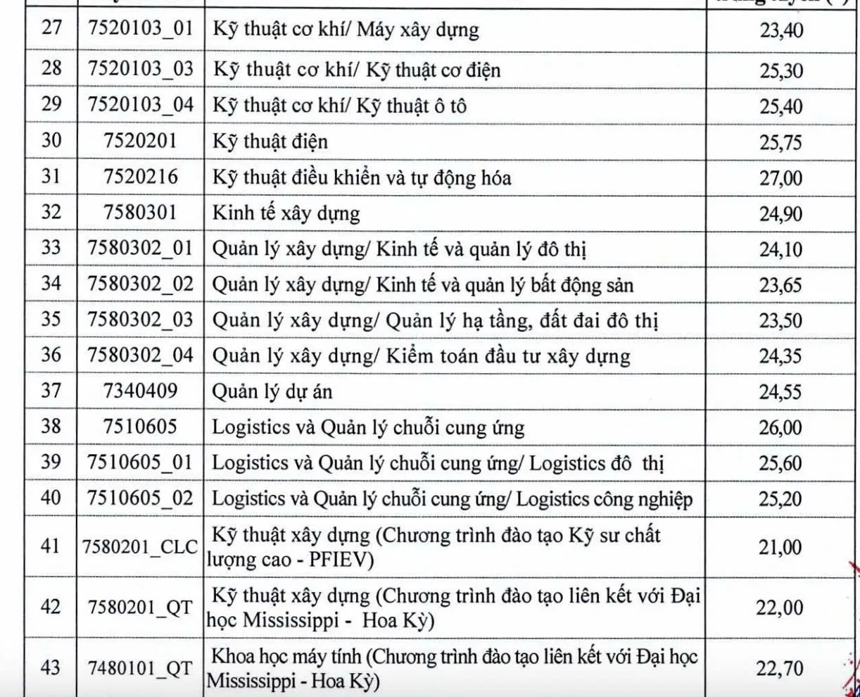 Điểm chuẩn Trường Đại học Xây dựng 2025.