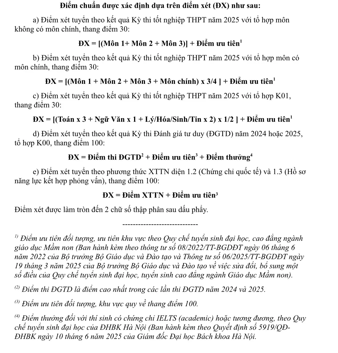Chi tiết điểm chuẩn trúng tuyển vào các chương trình đào tạo của Đại học Bách khoa Hà Nội năm 2025.