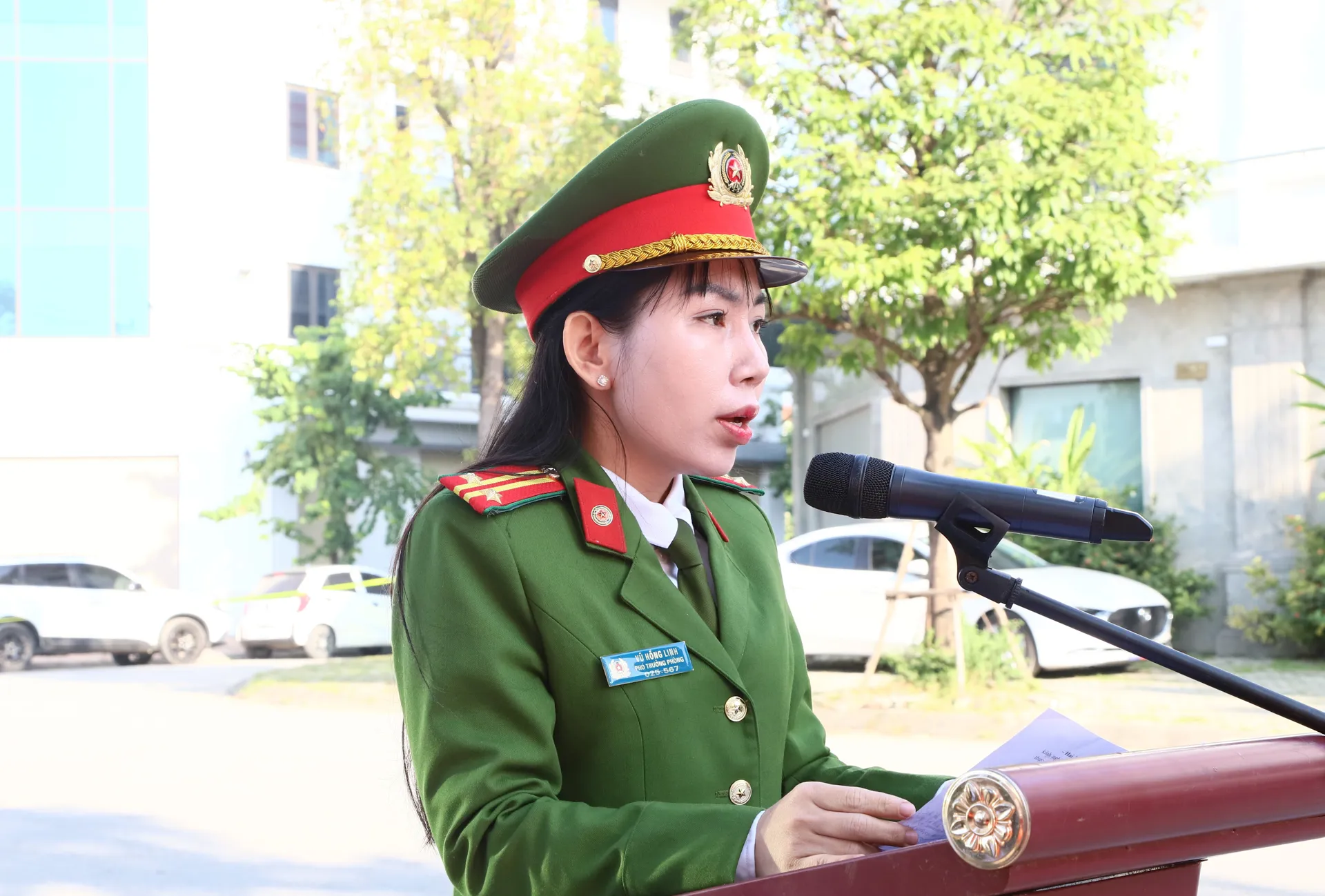 Thiếu tá Đặng Anh Tuân - Phó Trưởng Công an phường Kiến Hưng phát biểu khai mạc.