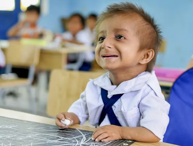 Sau nhiều năm đến trường, từ chỗ chỉ biết khóc thét mỗi khi gặp người lạ, cậu bé tý hon đã biết vỗ tay tập hát, cầm phấn viết chữ và đứng dậy chào cô giáo, lễ phép chào hỏi khi có người hỏi thăm.