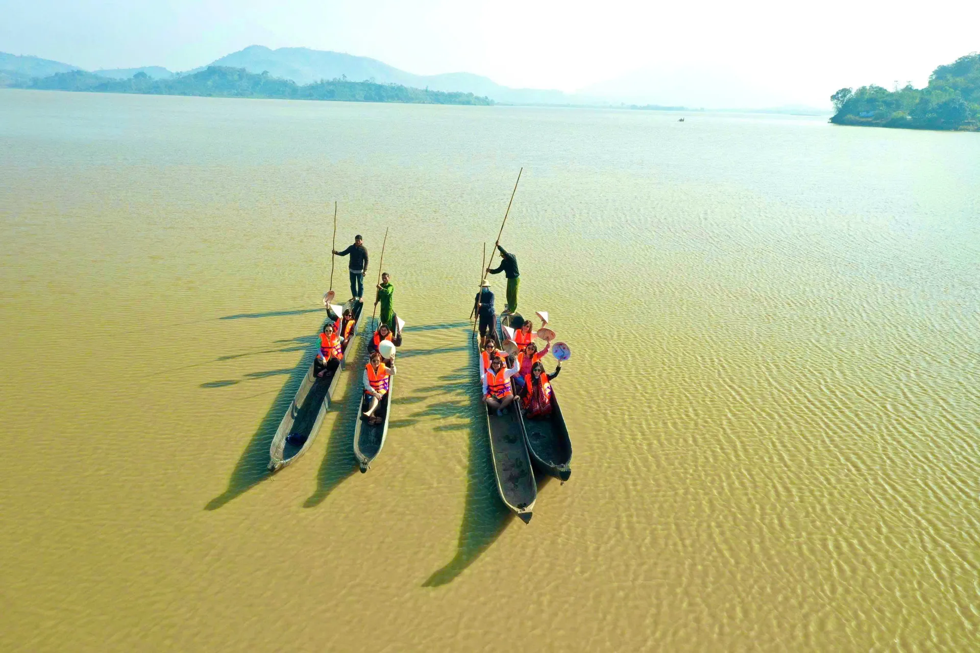 Rời xa những con thác dữ dội, hồ Lắk hiện ra như một “nàng thơ” dịu dàng, mang đến nốt lặng yên bình cho hành trình du Xuân Tây Nguyên. Giữa bảng lảng sương sớm hay ánh hoàng hôn rực rỡ, được ngồi thuyền độc mộc lướt trên mặt hồ phẳng lặng, bạn sẽ cảm nhận trọn vẹn vẻ đẹp huyền ảo của hồ nước ngọt tự nhiên lớn thứ hai Việt Nam. Nơi đây không chỉ có cảnh sắc nên thơ từ đỉnh Bảo Đại Cung nhìn xuống, mà còn lưu giữ hồn cốt văn hóa M’Nông tại các buôn Jun, buôn Lê cổ kính. Một buổi chiều đầu năm, thưởng thức món chả cá thác lác đặc sản bên bờ hồ trong cái nắng vàng hanh hao sẽ là mảnh ghép hoàn hảo, khép lại những trải nghiệm đầy cảm xúc tại phía Tây Đắk Lắk. Ảnh: Ninh Tôn