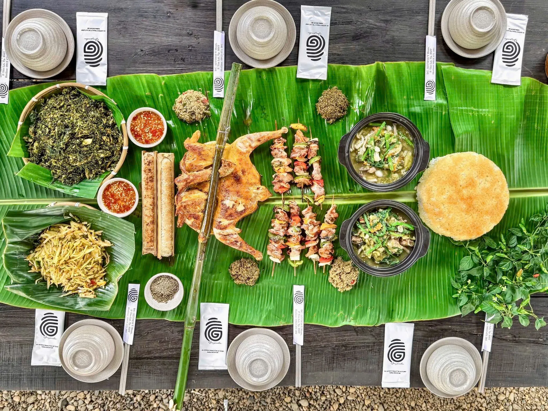 Hành trình đến với Đắk Lắk còn là một bữa tiệc vị giác đầy thú vị. Ở phía Tây Đắk Lắk, bạn đừng quên thưởng thức món gà nướng chấm muối ớt kiến vàng cay nồng, ăn kèm cơm lam thơm dẻo... Ảnh: Gòn Garden