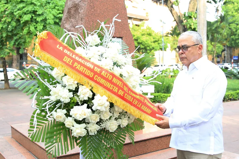 Bí thư thứ nhất Thành ủy La Habana (Cuba) Luis Antonio Torres Iríbar đặt hoa tại tượng đài José Martí.