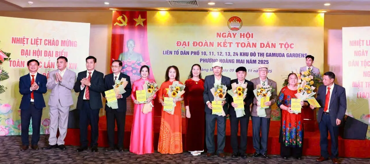 Kinhtedothi – Ngày 9/11, Ngày hội Đại đoàn kết toàn dân tộc Liên tổ dân phố (TDP) 10, 11, 12, 13, 24 Khu đô thị Gamuda Garden phường Hoàng Mai năm 2025 đã được tổ chức, nhân kỷ niệm 95 năm Ngày truyền thống MTTQ Việt Nam. Ngày hội do Ban công tác mặt trận và Nhân dân Liên TDP 10,11,12,13,24 phường Hoàng Mai tổ chức.