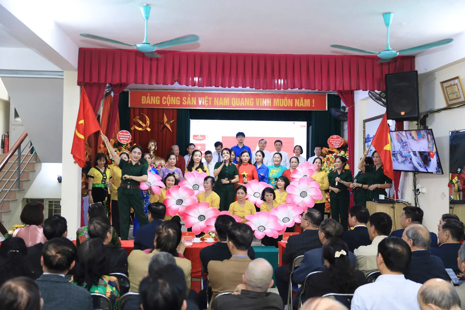 Lãnh đạo phường Đống Đa tặng lẵng hoa chúc mừng Ngày hội đại đoàn kết toàn dân tộc năm 2025 Khu dân cư số 30.