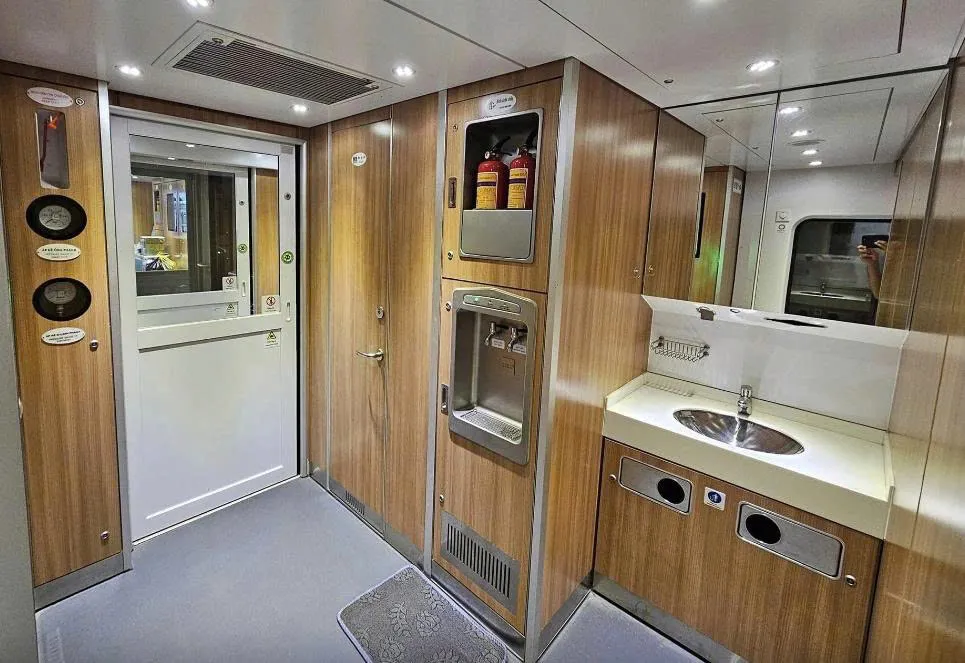 Tàu cũng được lắp đặt hệ thống vệ sinh hút chân không, không mùi, tương tự như máy bay. Ghế ngồi có thể quay được 360 độ; có hệ thống hãm phanh điều khiển điện tử có tính năng ngăn ngừa hãm cứng bánh xe trong những tình huống khẩn cấp cần giảm tốc và có đồng hồ báo nhiệt độ đầu trục để tăng tính năng an toàn khi vận hành đoàn tàu.