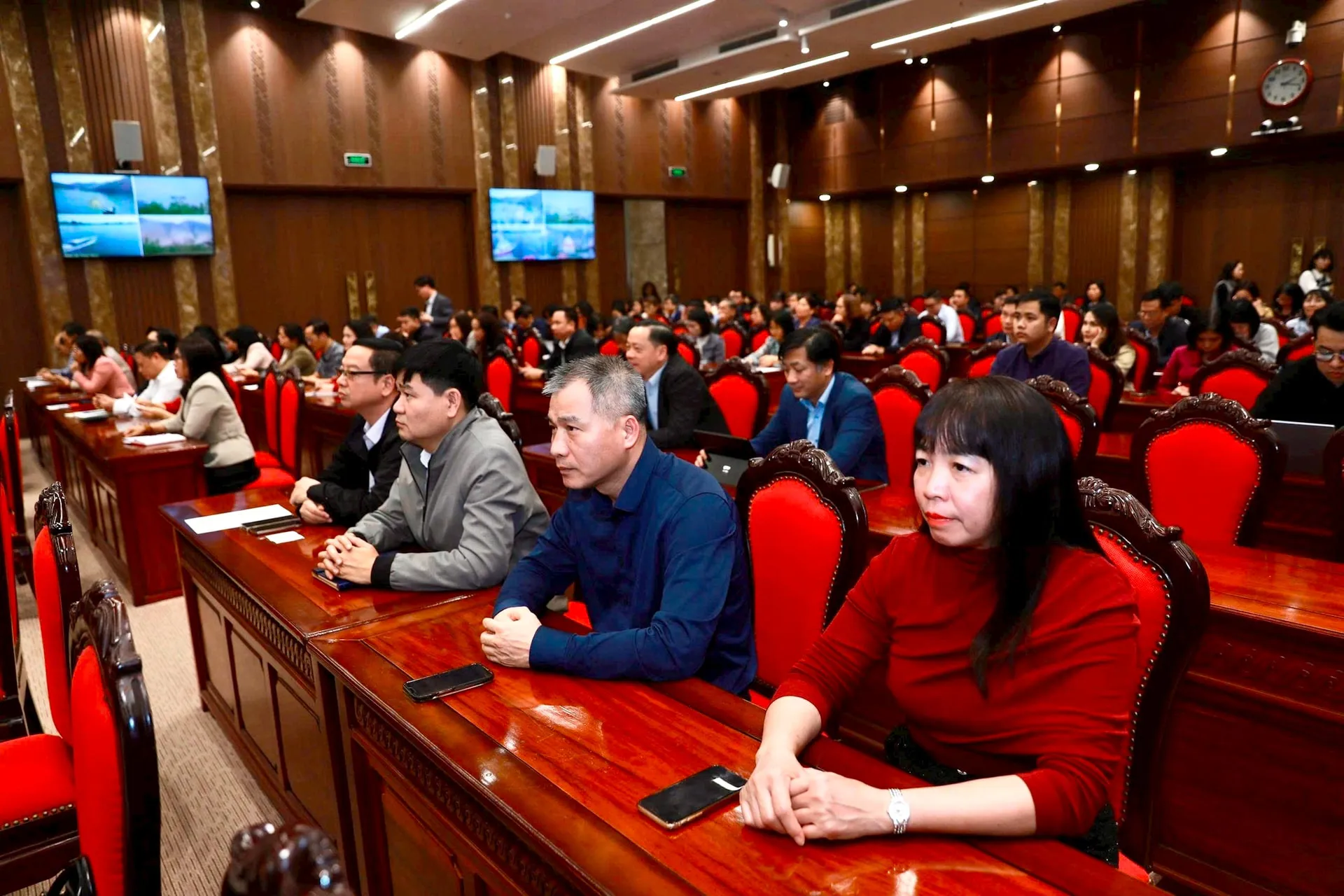 Các đại biểu tham dự hội nghị tại điểm cầu Thành ủy Hà Nội chiều 7/2. Ảnh: Nhật Nam