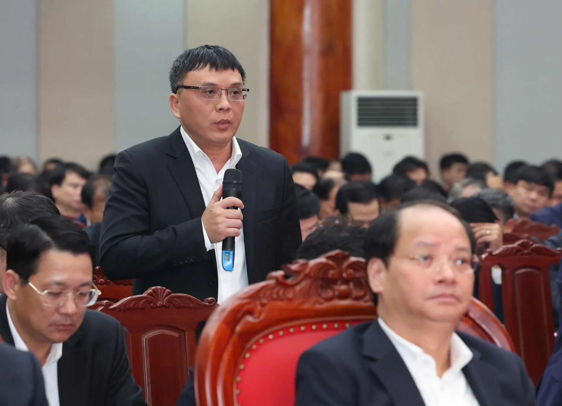 Giám đốc Sở Tài chính Nguyễn Ngọc Tú thảo luận tại hội nghị