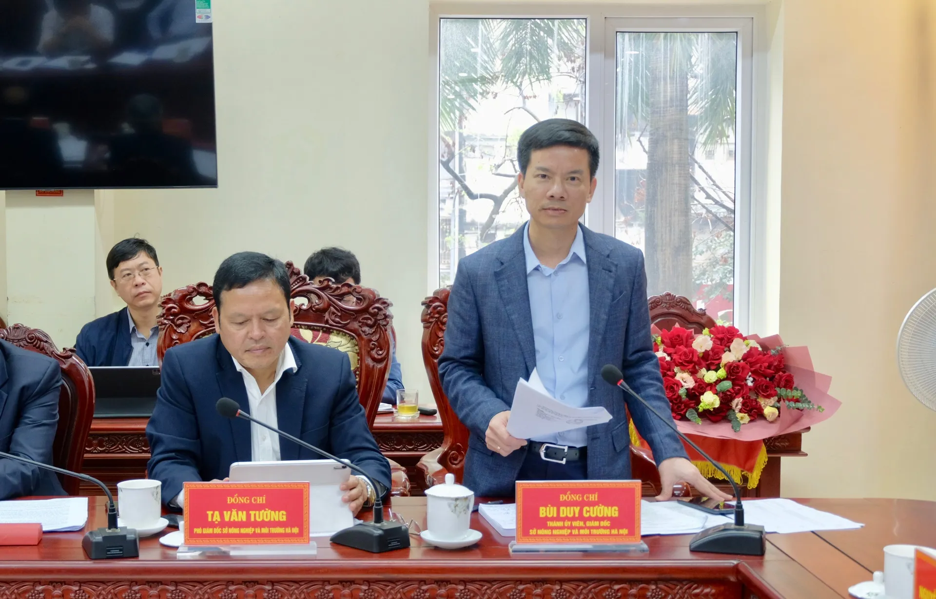 Tại cuộc làm việc, đại diện các đơn vị thuộc Sở Nông nghiệp và Môi trường đã báo cáo, đề xuất lãnh đạo UBND TP Hà Nội chỉ đạo các sở ngành tiếp tục quan tâm, phối hợp tháo gỡ một số khó khăn, vướng mắc và triển khai các nhiệm vụ.