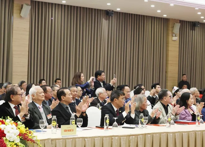 Tại buổi gặp mặt các đại biểu bày tỏ niềm vui, vinh dự và tin tưởng vào sự lãnh đạo của Đảng, sự điều hành của Nhà nước, với mong muốn đất nước ta ngày càng phát triển; quan tâm, tạo điều kiện thuận lợi để đội ngũ văn nghệ sỹ không ngừng lớn mạnh, đóng góp nhiều hơn nữa, đáp ứng yêu cầu phát triển đất nước trong kỷ nguyên mới, kỷ nguyên vươn mình của dân tộc Việt Nam.