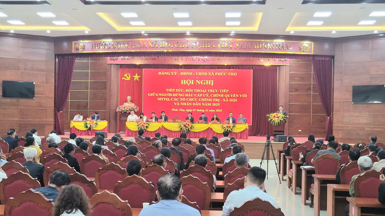 Ngày 7/11, xã Phúc Thọ tổ chức hội nghị tiếp xúc, đối thoại trực tiếp giữa Bí thư Đảng ủy, Chủ tịch HĐND xã và Chủ tịch UBND xã với Ủy ban MTTQ, các tổ chức chính trị - xã hội và đại diện Nhân dân năm 2025. Đây là dịp để lãnh đạo xã lắng nghe, tiếp thu ý kiến, kịp thời tháo gỡ khó khăn, vướng mắc từ cơ sở, góp phần xây dựng chính quyền gần dân, vì dân.