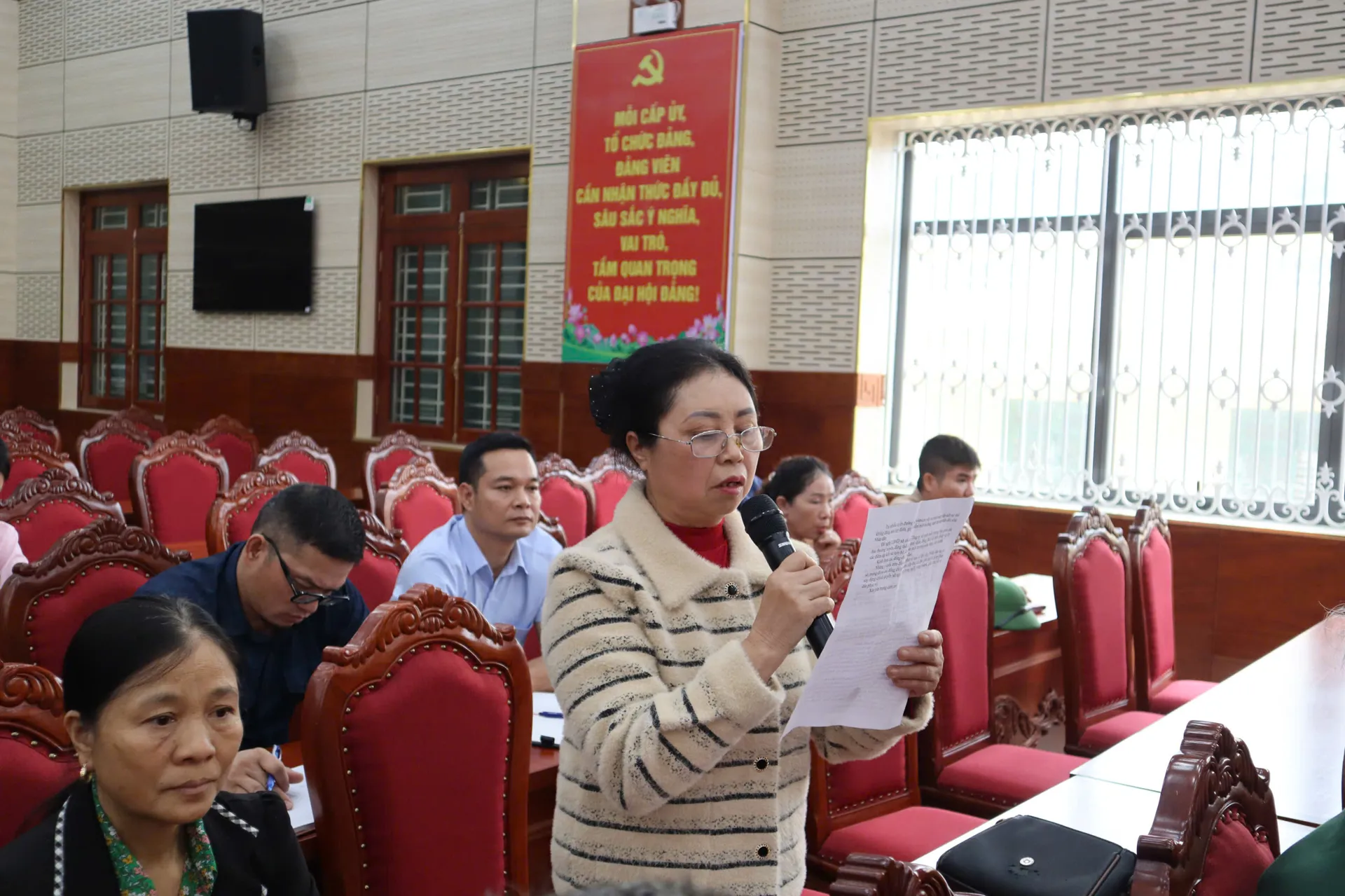 Nêu vấn đề tồn tại về cấp sổ đỏ đất nông nghiệp, bà Nguyễn Thị Thắm, Bí thư Chi bộ thôn Bảo Vệ 2 cho biết: mới khoảng 50% số hộ có đất nông nghiệp được cấp sổ đỏ, dù nhiều hộ đã hoàn thiện hồ sơ từ lâu. Vì vậy, đề nghị xã rà soát, có quy trình rõ ràng để tháo gỡ cho các hộ còn lại… “Thực hiện chính quyền địa phương 2 cấp, tiếp tục tăng cường công tác dân vận, lãnh đạo xã cần thường xuyên về cơ sở, dự họp thôn xóm. Qua đó, lãnh đạo, cán bộ nắm được tâm tư, nguyện vọng người dân”, bà Nguyễn Thị Thắm nêu ý kiến...