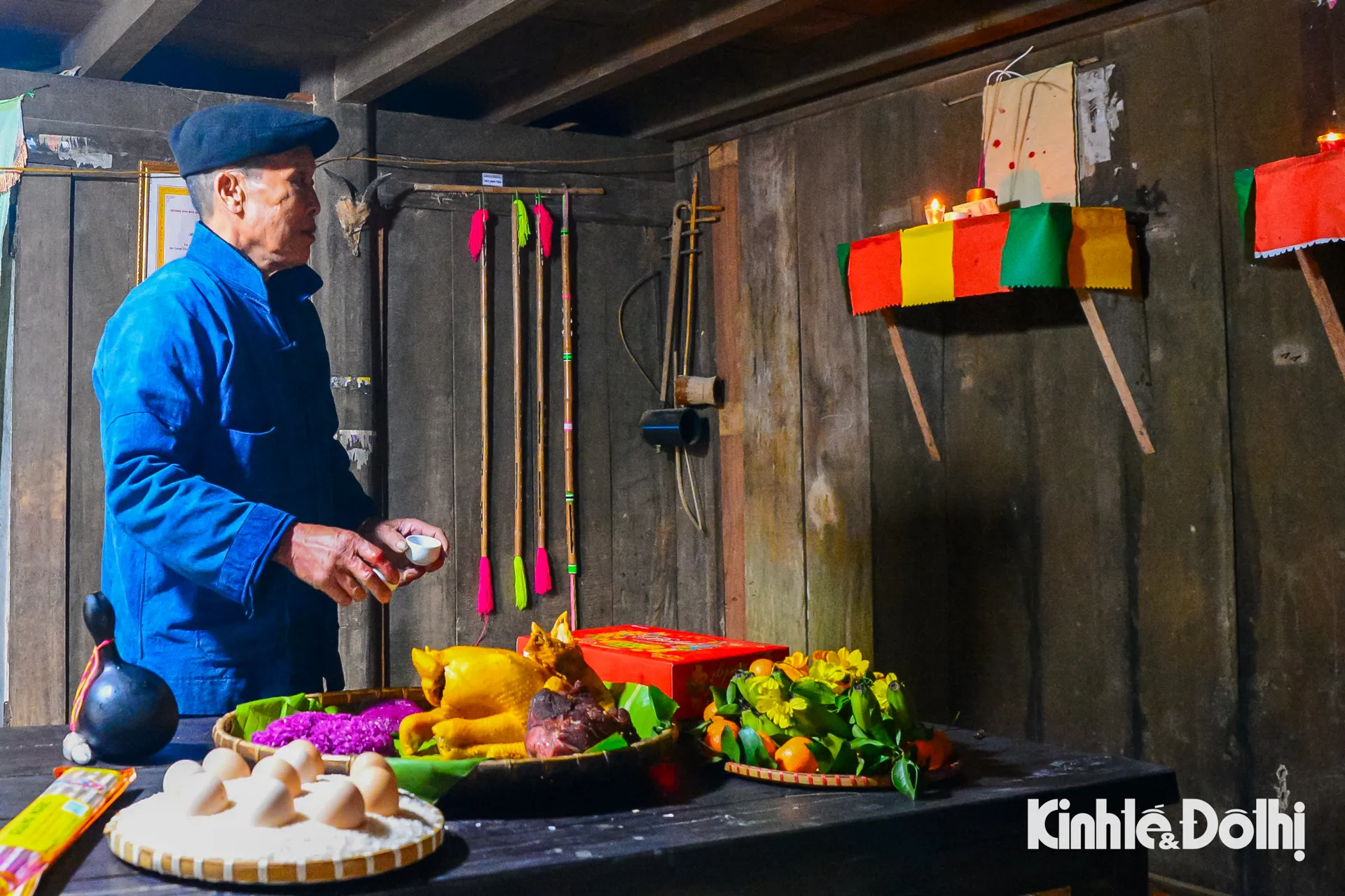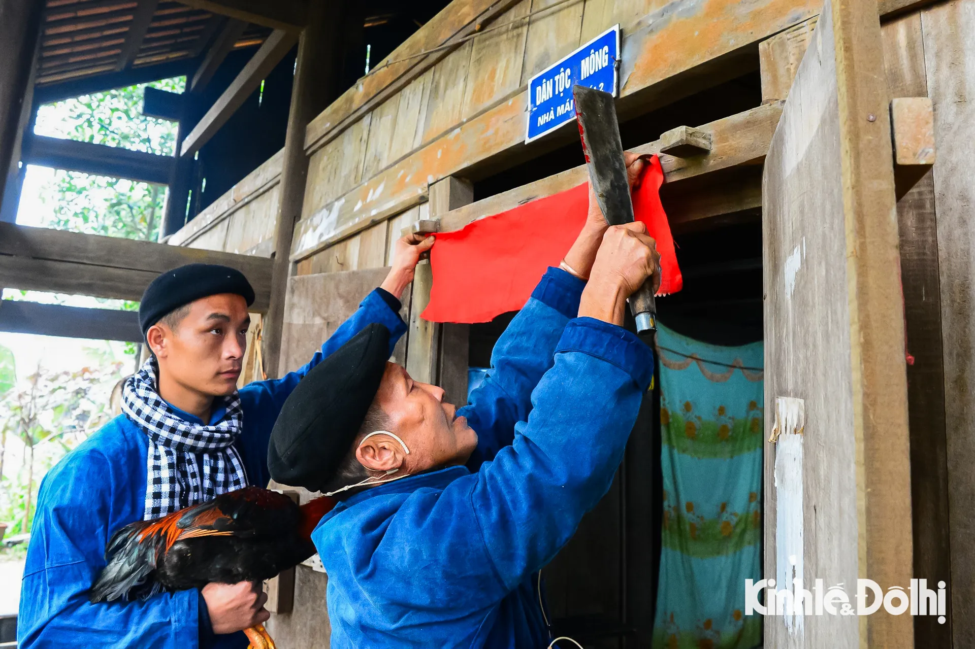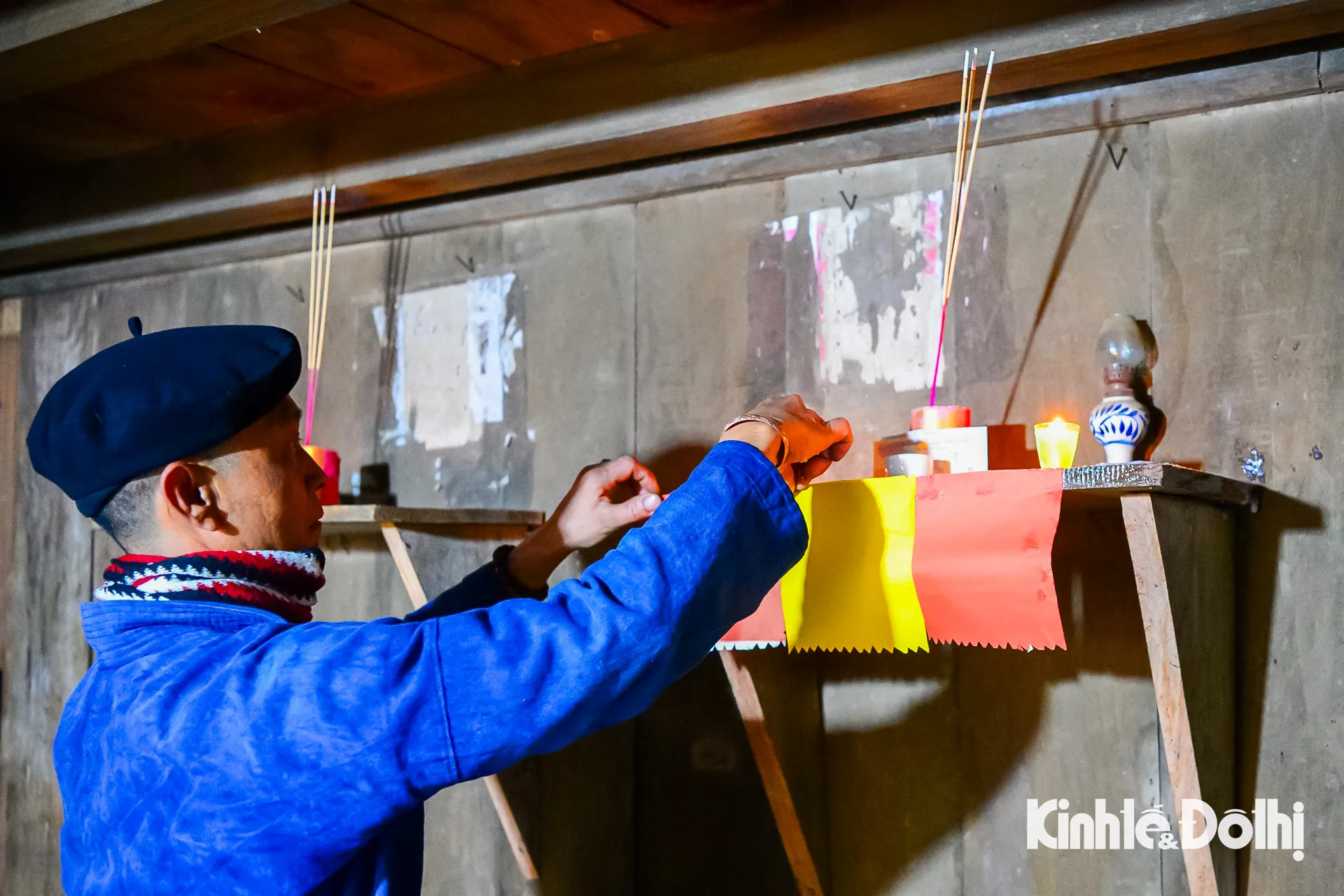 Không khí Tết bao trùm khi thầy cúng thực hiện nghi lễ thay giấy thờ “Xử Ca” - vị thần có vai trò đặc biệt quan trọng trong đời sống tâm linh của người Mông.