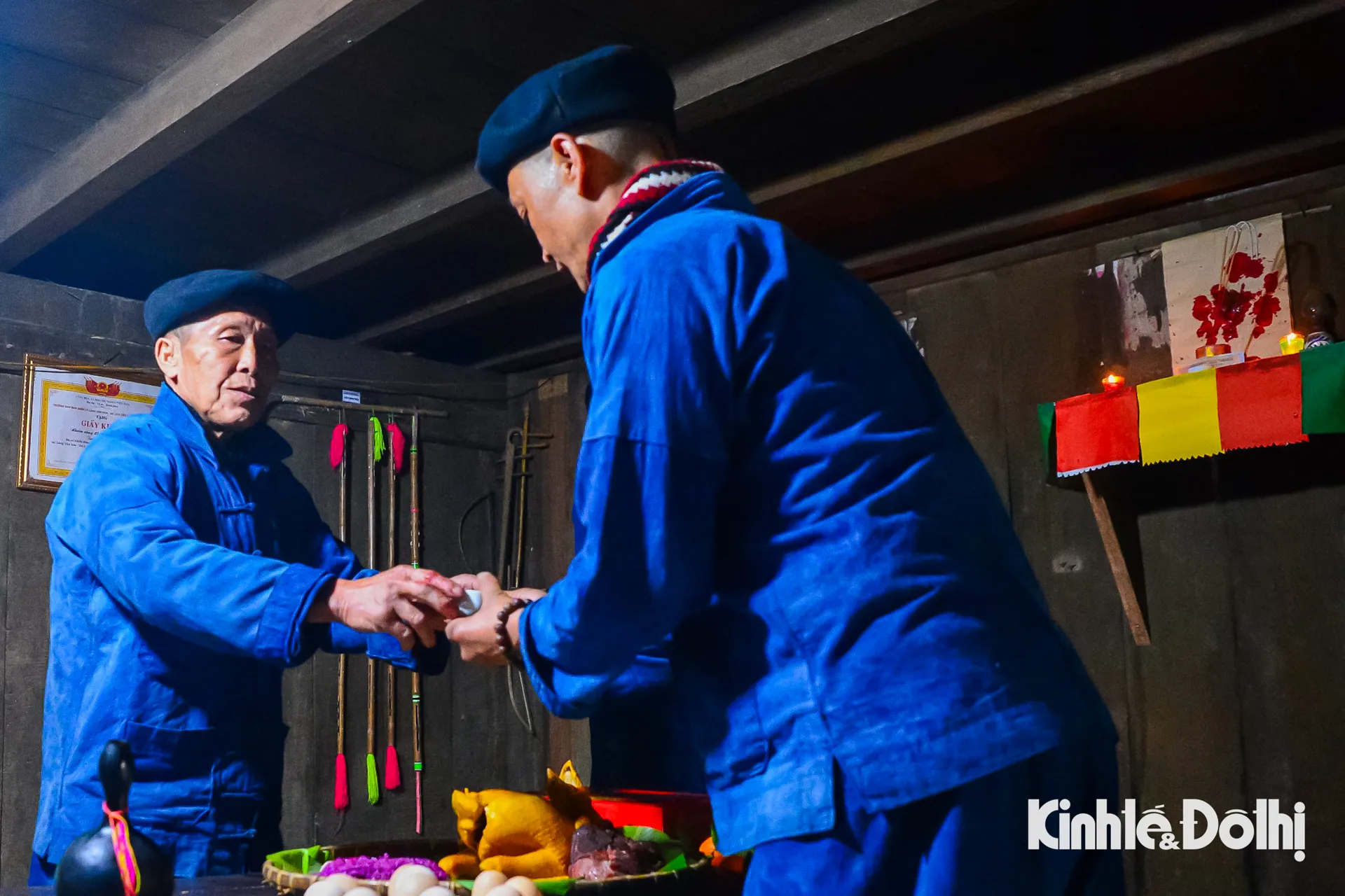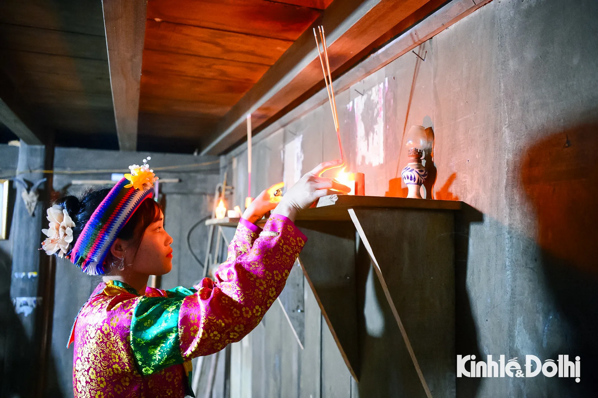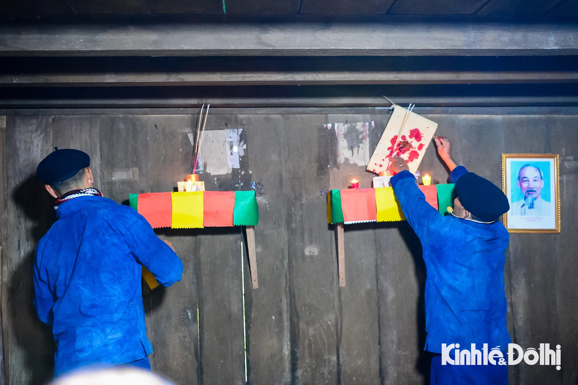 Không khí Tết bao trùm khi thầy cúng thực hiện nghi lễ thay giấy thờ “Xử Ca” - vị thần có vai trò đặc biệt quan trọng trong đời sống tâm linh của người Mông.
