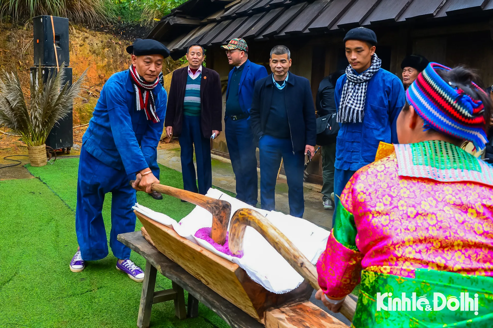 Một trong những điểm nhấn nổi bật của chương trình là hoạt động làm bánh dày - món bánh mang ý nghĩa thiêng liêng, tượng trưng cho mặt trăng, mặt trời, cho nguồn gốc sinh ra muôn loài. Từ khâu đồ xôi, chuẩn bị cối giã, đến công đoạn giã bánh, nặn bánh và bọc lá chuối đều được thực hiện tỉ mỉ, công phu. Tiếng chày giã bánh hòa cùng tiếng cười nói rộn ràng của bà con và du khách đã tạo nên không khí Tết ấm áp, gần gũi.