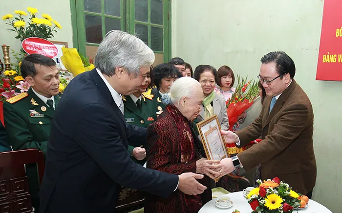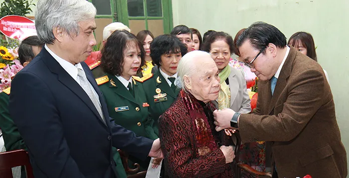 Kinhtedothi - Chiều 2/2, Ủy viên Bộ Chính trị, Bí thư Thành ủy Hà Nội Hoàng Trung Hải đã đến trao Huy hiệu 80 năm tuổi Đảng cho đồng chí Ngô Duy Liên, chi bộ Lý Nam Đế 3, Đảng bộ phường Cửa Đông, quận Hoàn Kiếm. Đây là đảng viên duy nhất của Đảng bộ TP Hà Nội được nhận Huy hiệu 80 năm tuổi Đảng trong đợt 3/2/2018.