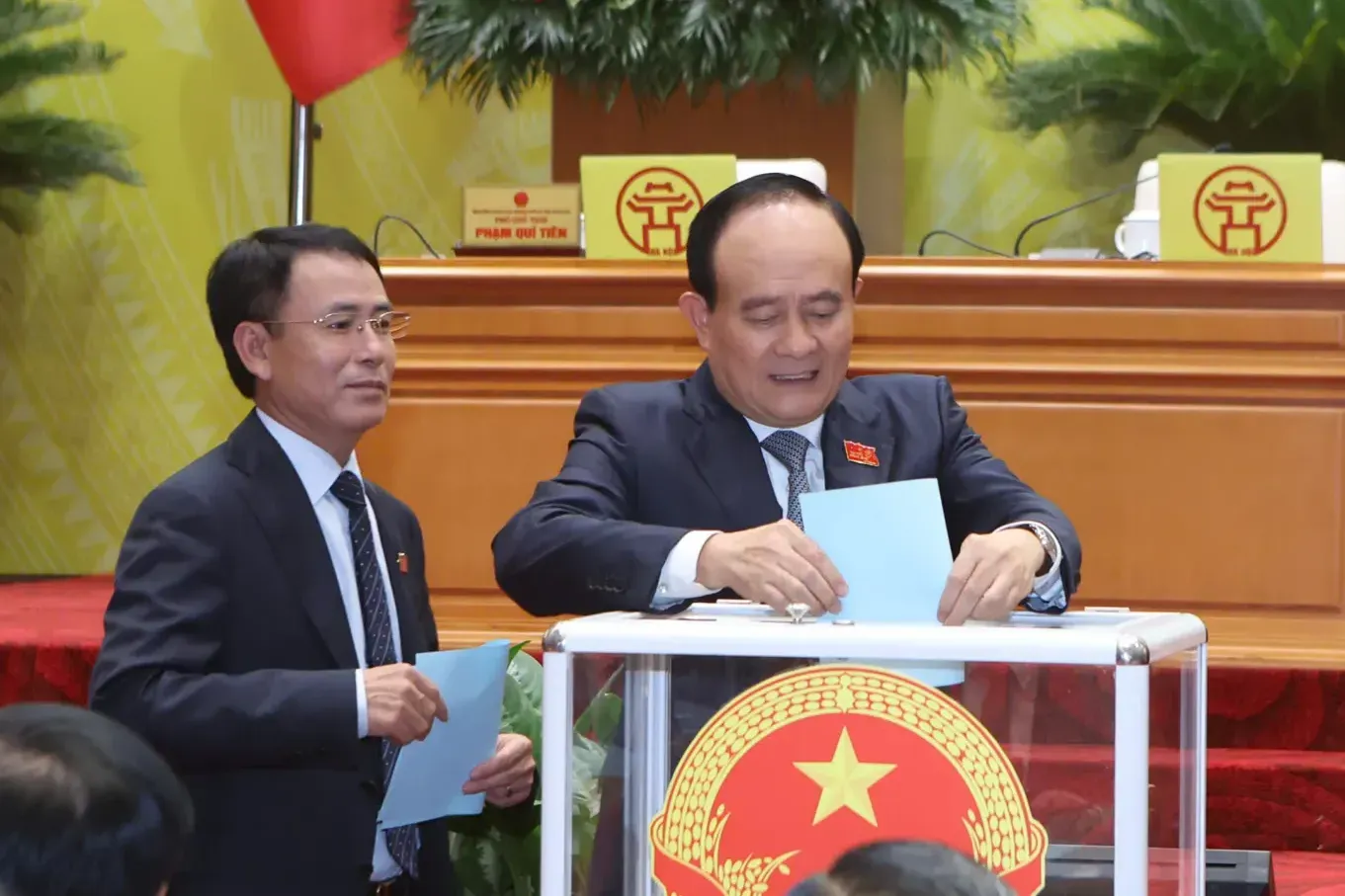 Các đại biểu HĐND TP Hà Nội khóa XVI bỏ phiếu bầu chức danh Chủ tịch UBND TP nhiệm kỳ 2021-2026