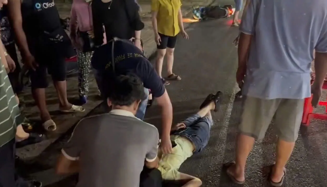 Nạn nhân vụ tai nạn tối 16/9/2025 được người dân đưa đi cấp cứu.