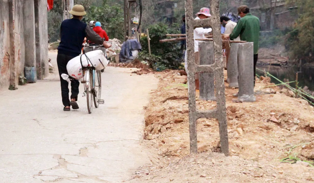 Kinhtedothi - Đường đê nứt vỡ, trong khi vật liệu xây dựng (VLXD) được chất chứa đầy trong đình là 2 vấn đề đang khiến nhiều người dân xã Hữu Hòa (huyện Thanh Trì) rất bức xúc kể từ khi dự án kè cứng bờ sông Nhuệ đoạn qua địa bàn xã được triển khai.