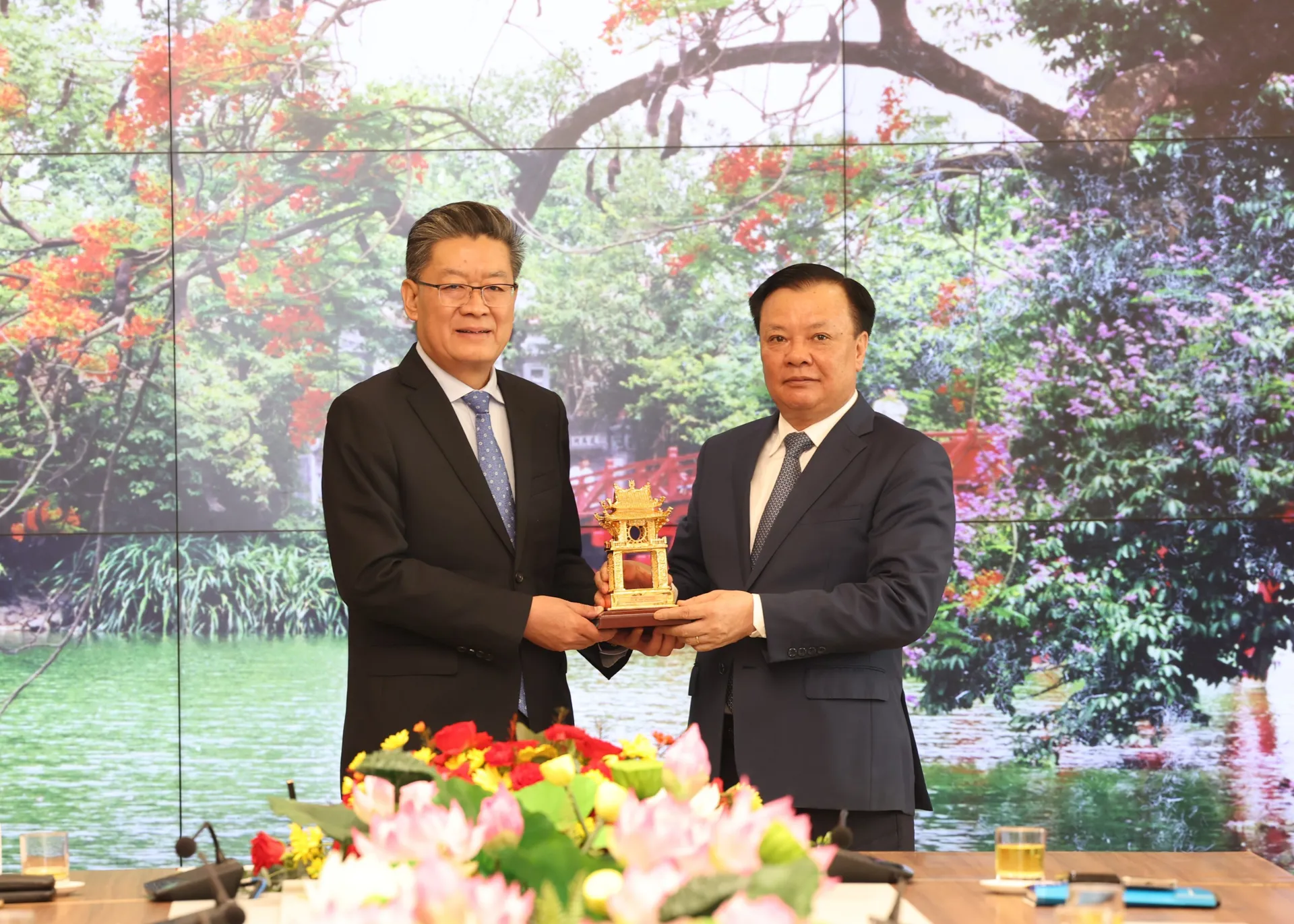 Ngày 2/4, Uỷ viên Bộ Chính trị, Bí thư Thành ủy Hà Nội Đinh Tiến Dũng chủ trì buổi tiếp và làm việc với đoàn đại biểu TP Quảng Châu (Trung Quốc) do Ủy viên Ban thường vụ Tỉnh ủy Quảng Đông, Bí thư Thành ủy Quảng Châu Quách Vĩnh Hàng dẫn đầu.
