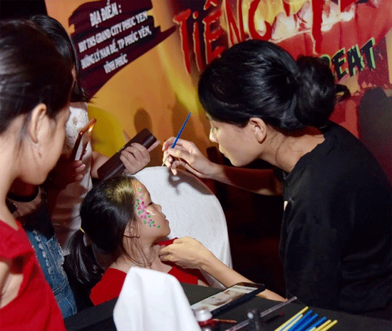 Sự xuất hiện của các nhân vật kinh dị cùng với hiệu ứng mờ ảo từ làn khói trắng tạo nên một không gian ma quái. Những người trẻ tuổi hào hứng với những nhân vật bước ra từ những bộ phim kinh dị nổi tiếng.