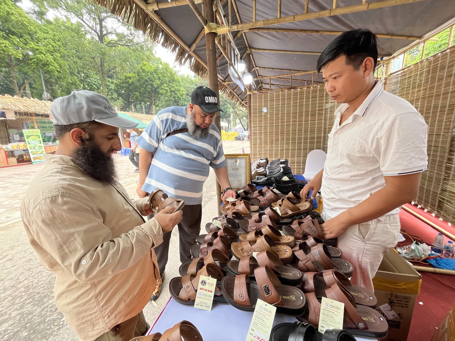 Người đàn ông đến từ Oman và bạn của mình đã quyết định mở hầu bao để mua hai đôi giày từ làng nghề giày da Giẽ Thượng (xã Chuyên Mỹ, TP Hà Nội) về sử dụng và làm quà tặng cho cậu con trai.