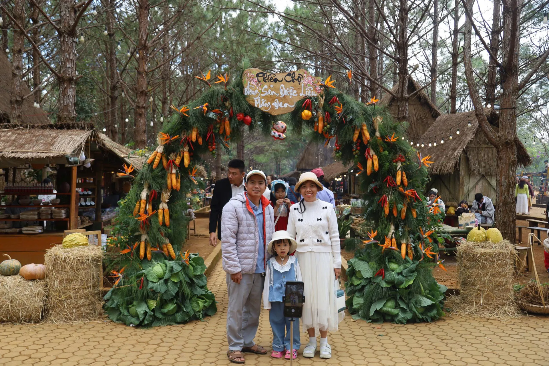 Điểm nhấn thu hút đông đảo du khách là phiên chợ Nông sản và Dược liệu Măng Đen, diễn ra từ ngày 1 đến 3/1/2026. Hàng chục gian hàng trưng bày, giới thiệu các sản phẩm đặc trưng như rau củ ôn đới, trái cây, dược liệu, sản phẩm OCOP và hàng hóa do các hợp tác xã, hộ dân vùng cao sản xuất.