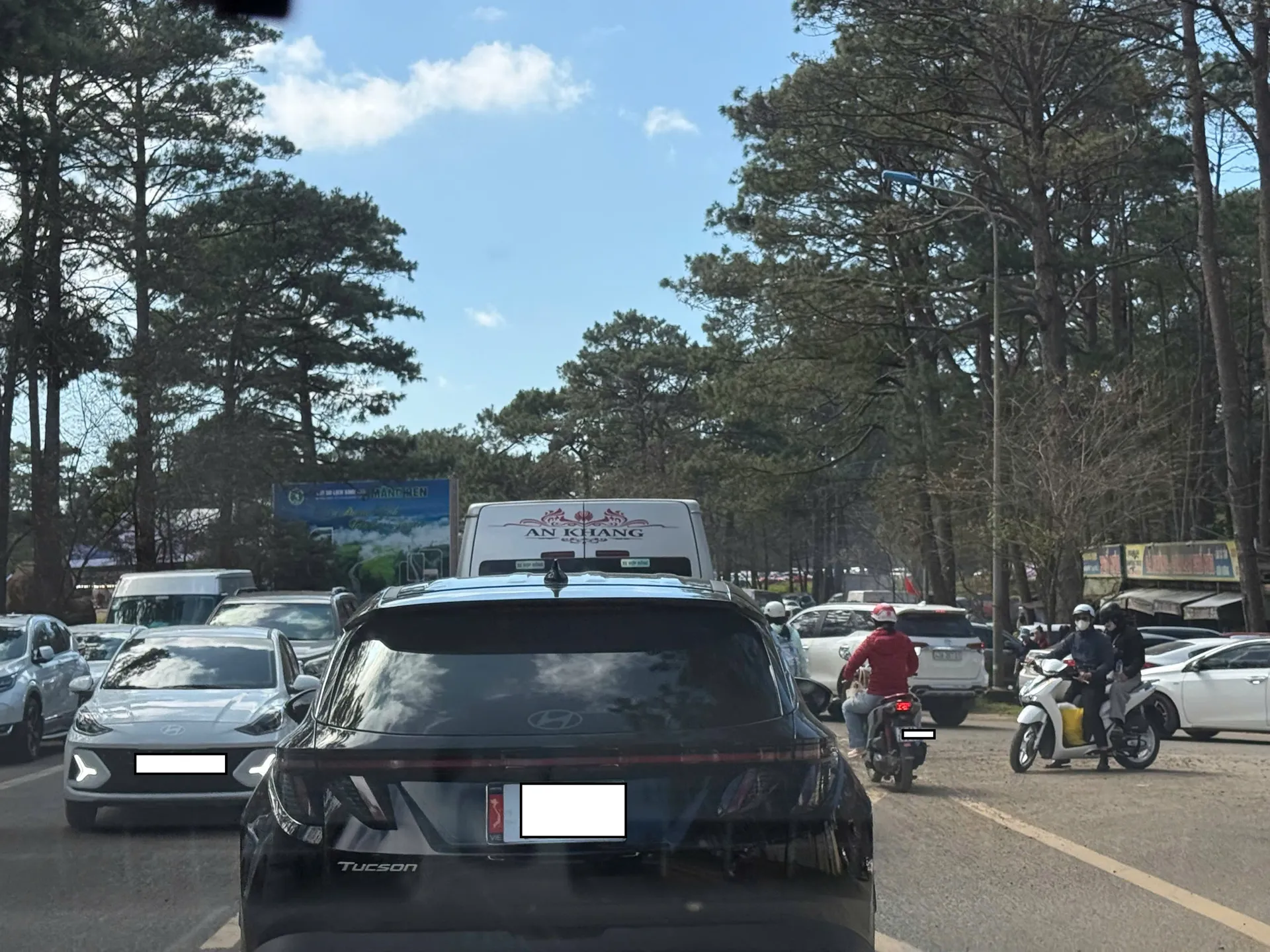 Tuyến đường Phạm Văn Đồng (xã Măng Đen) tấp nập phương tiện giao thông trong ngày đầu tiên của kỳ nghỉ Tết Dương lịch 2026.