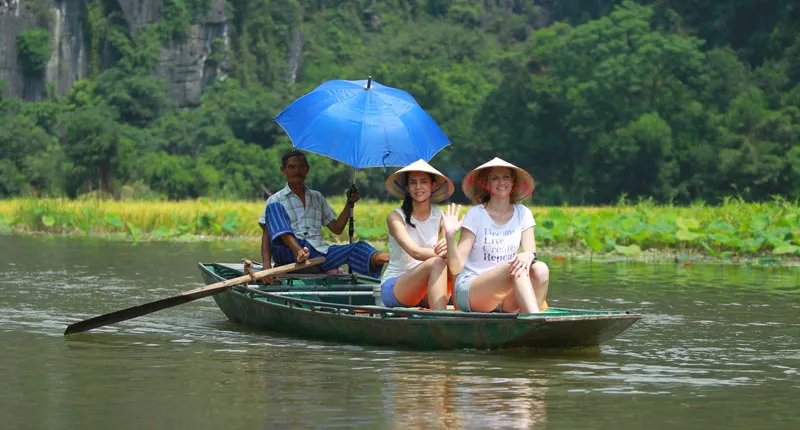 Du khách tham quan Tam Cốc Bích Động (Ninh Bình). Ảnh: Phạm Hùng