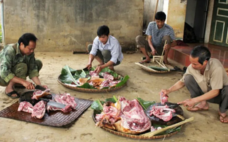 Làng quê muôn đời vẫn thế, vẫn duy trì những tập tục xưa. Những ngày cận Tết, người dân ở làng quê lại háo hức rủ nhau ăn đụng thịt lợn.