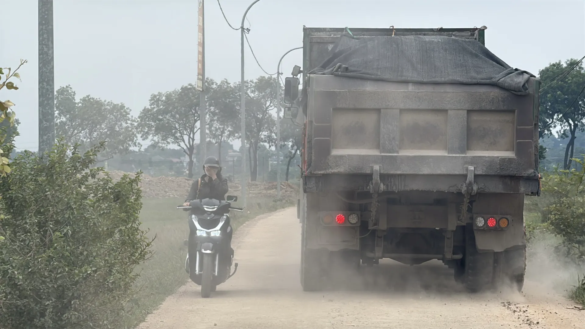 Chia sẻ với phóng viên, bà N. T. T, trú tại phường Sơn Tây chia sẻ: “Tuyến đường nối từ đê sông Hồng ra QL32 trước cửa nhà tôi chỉ rộng 5m, thế nhưng, mỗi ngày có hàng trăm lượt xe tải cỡ lớn, xe đầu kéo, container di chuyển qua rầm rập. Xe đi đến đâu cuốn theo khói bụi, đất đá mù mịt tới đấy. Những phương tiện này hoạt động càng rầm rộ vào ban đêm”.