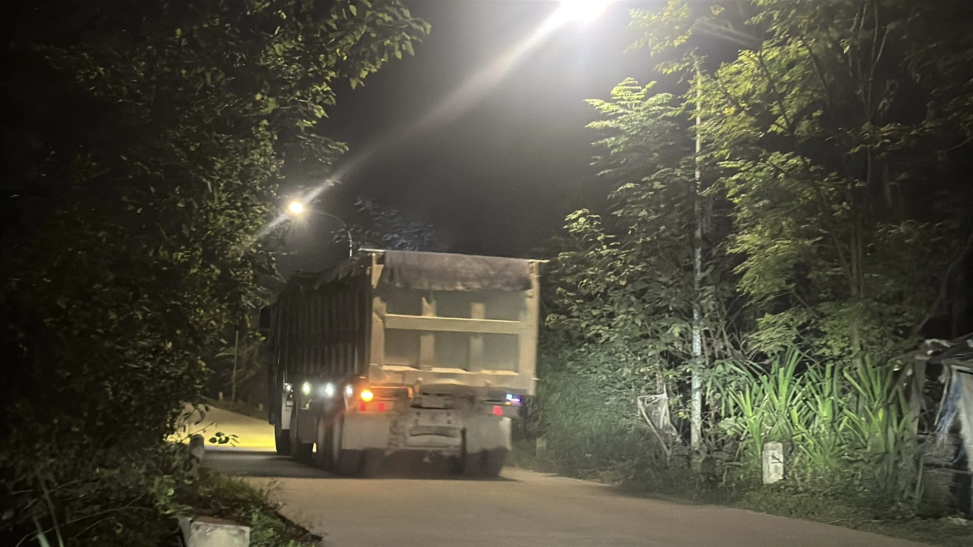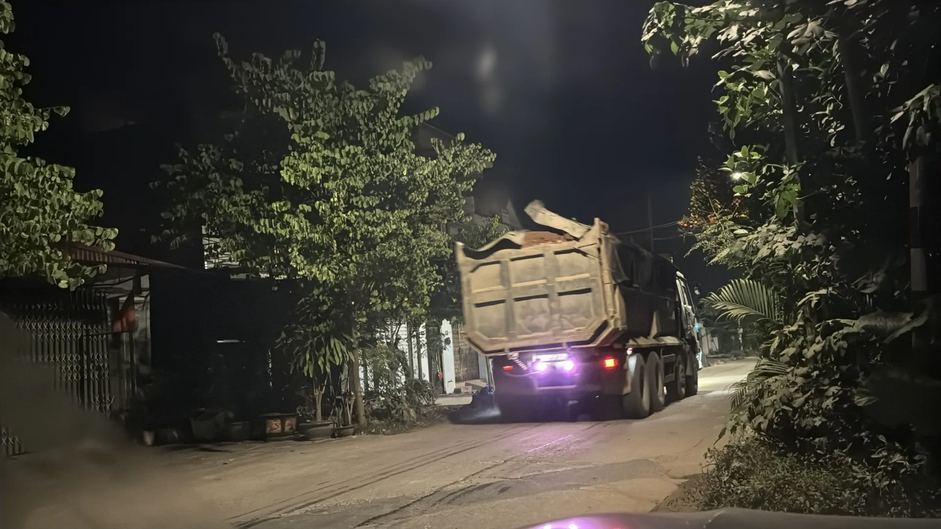 Về đêm, hoạt động vận tải đất, cát càng diễn ra rầm rộ.