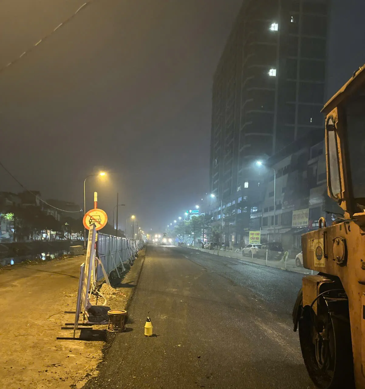 Đơn vị thi công làm "3 ca, 4 kíp" để thông xe đường Nguyễn Cảnh Dị trước kế hoạch 2 ngày.