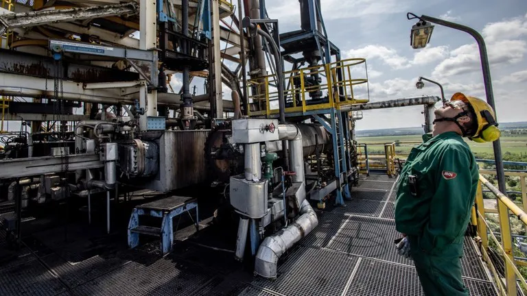 Một công nhân đang kiểm tra đường ống tại một nhà máy lọc dầu ở Szazhalombatta, Hungary. Ảnh: RT