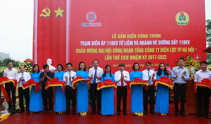 Kinhtedothi - Sáng 24/8, Tổng công ty Điện lực TP Hà Nội (EVN HANOI) và Ban QLDA lưới điện Hà Nội đã tổ chức Lễ gắn biển công trình Trạm biến áp (TBA) 110kV Từ Liêm và nhánh rẽ đường dây 110kV tại phường Cổ Nhuế 2, quận Bắc Từ Liêm. Đây là công trình chào mừng 88 năm Ngày thành lập Công đoàn Việt Nam (28/7/1929 - 28/7/2017) và chào mừng Đại hội Công đoàn EVN HANOI lần thứ XXIV.