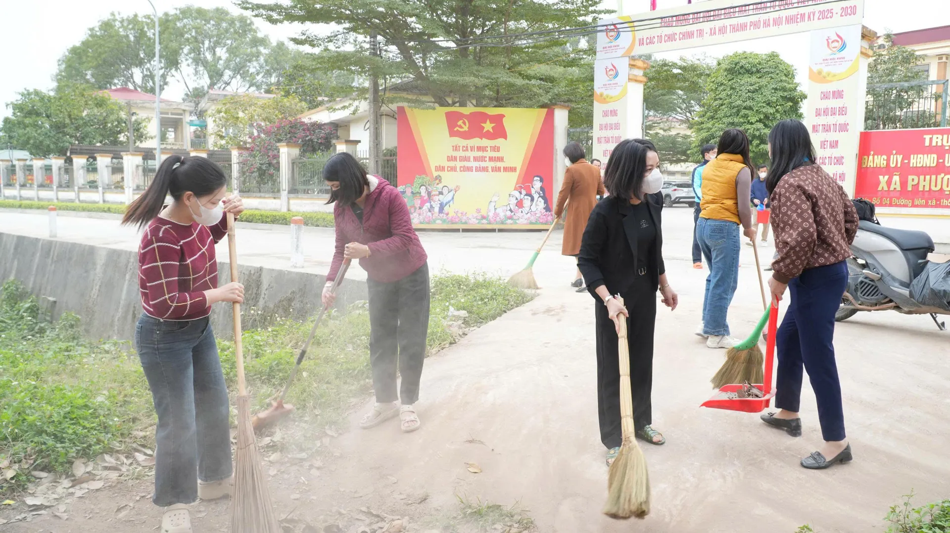 Cán bộ xã Phượng Dực sẽ thường xuyên tổng vệ sinh môi trường trên địa bàn
